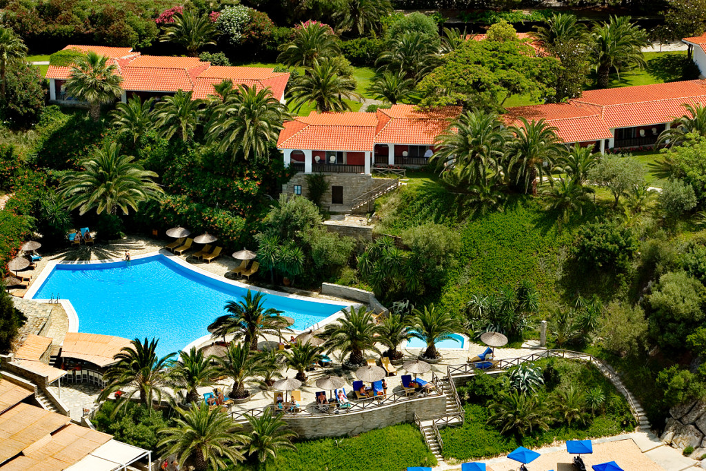 Inmitten einer Privatbucht liegt das griechische Luxushotel Eagles Palace Hotel & Spa, nur 90 Autominuten von Thessaloniki entfernt. Das Fünf-Sterne Haus befindet sich in Ouranoupolis auf dem sogenannten dritten Finger von Chalkidiki, unweit der Mönchsrepublik Athos. Umgeben von Olivenbäumen, Palmen, Blumen und Kräutern bietet es seinen Gästen insgesamt 164 großzügig eingerichtete Zimmer, Suiten und Bungalows. Kulinarisch setzt das Hotel mit seinen vier Restaurants auf eine Mischung aus griechischer, internationaler und asiatischer Küche. Das Spa by Elemis mit Hammam und Thalassotherapie sorgt für die Extraportion Entspannung. Die Luxusoase Eagles Palace hat von April bis Oktober geöffnet.